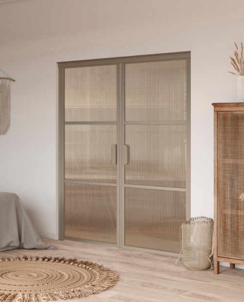 Kirjoita ensimmäinen arvio tuotteelle “Lasi­pariovi raitalasilla, maksimikoko 1 830 mm x 2 250 mm”